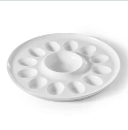 - Élégant plat de service pouvant contenir jusqu’à 12 œufs. Permet aussi le service des huîtres cocktail