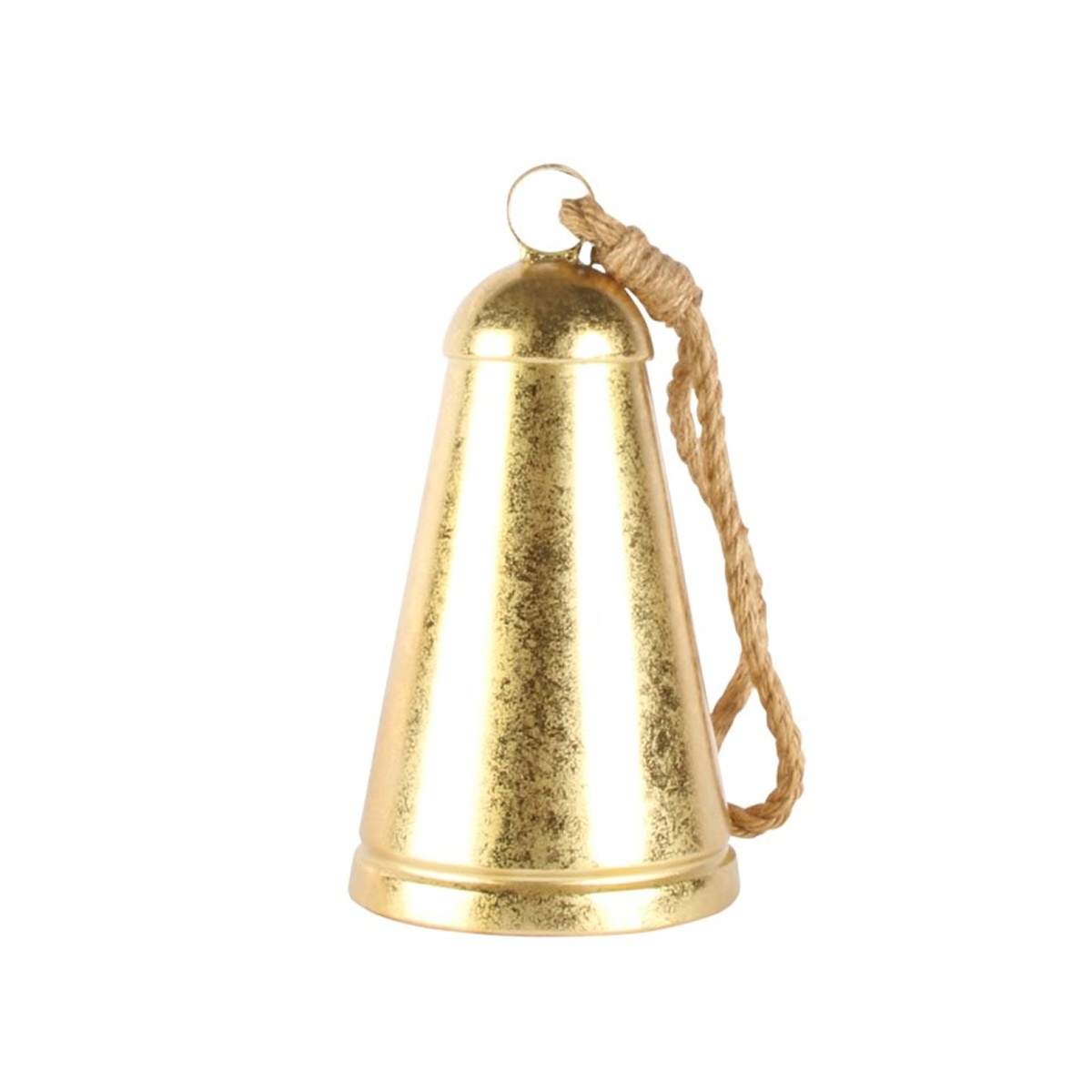 Illuminez vos fêtes avec cette grande cloche décorative dorée en métal et ficelle, idéale pour un décor chaleureux.