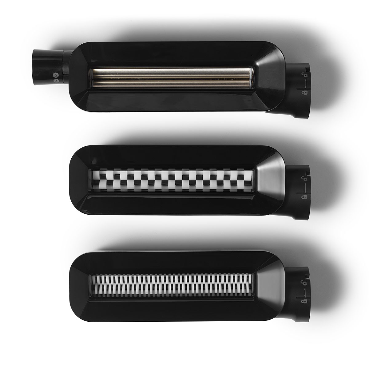 - Ensemble comprenant 3 accessoires : un laminoir à 5 réglages d’épaisseur et 2 coupe-pâtes